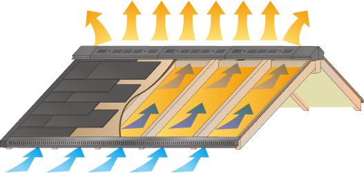 軒ゼロ、軒ありに関係なく軒先から換気が出来る画期的給気部材です。野地板の下に空気の流れを作る事で、小屋裏の湿度を下げ、結露を防ぎ住宅の劣化軽減に貢献し、住宅の長寿命化に必要な部材として、棟換気との併用をお勧め致します。